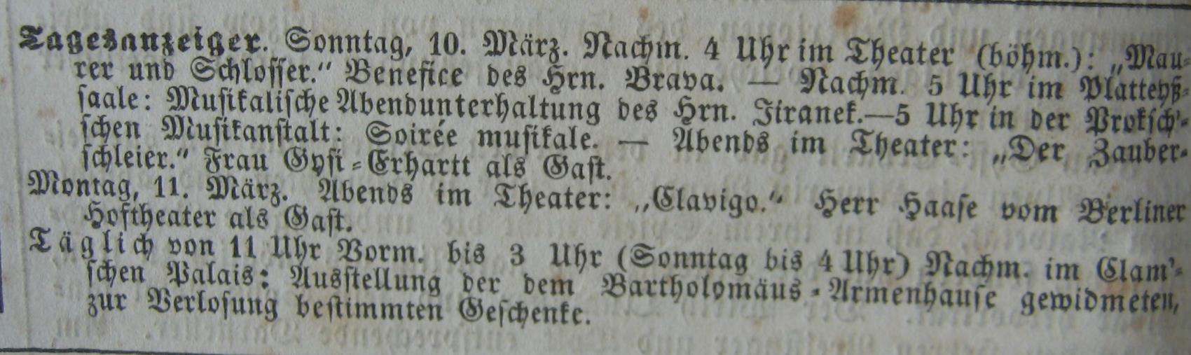 10-03-1850 Fourth evening musical entertainment given by the Music Institute of Jiránek
