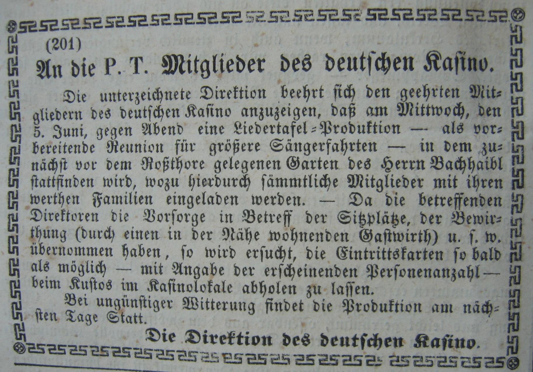 06-06-1850 Performance of Liedertafel by members of the Deutsche Casino