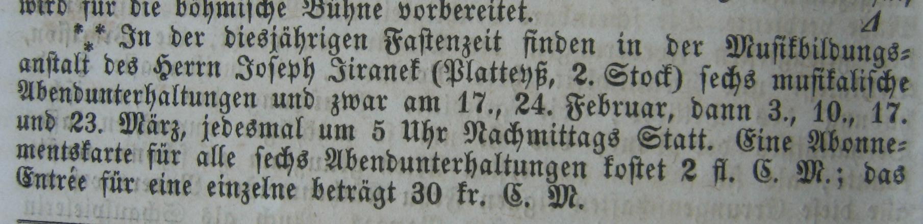 17-02-1850 First evening musical entertainment given by the Music Institute of Jiránek