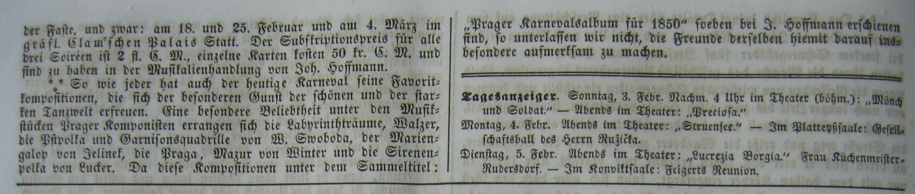 18-02-1850 First annual quartet entertainment [kvartettní zábava / Quartett-Soirée]
