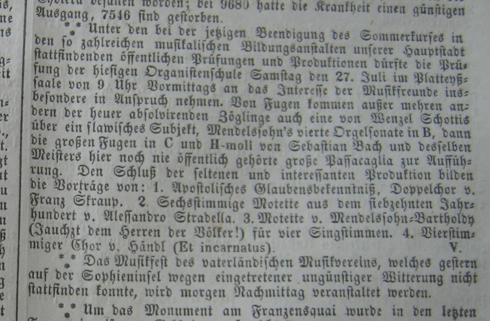27-07-1850 Annual practical examinations for pupils of the Prague Organ School